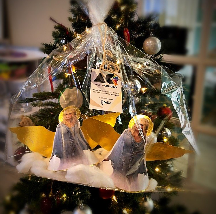 Christmas Ornaments: (Images 1 and 2) Japanese Paper on Wood, Sketched with Markers/Pen. (Images 3-5) Images Graphically done With Gold Leaf Added.