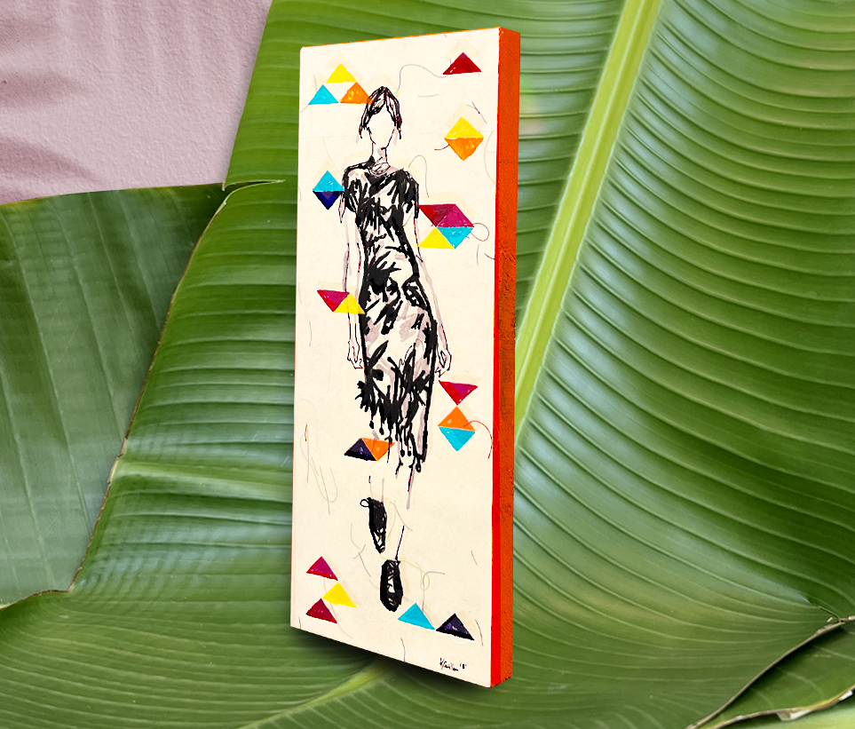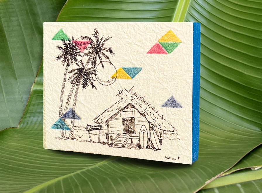 Paradise Sketches: Japanese Paper, Pen/Markers. On Wood
