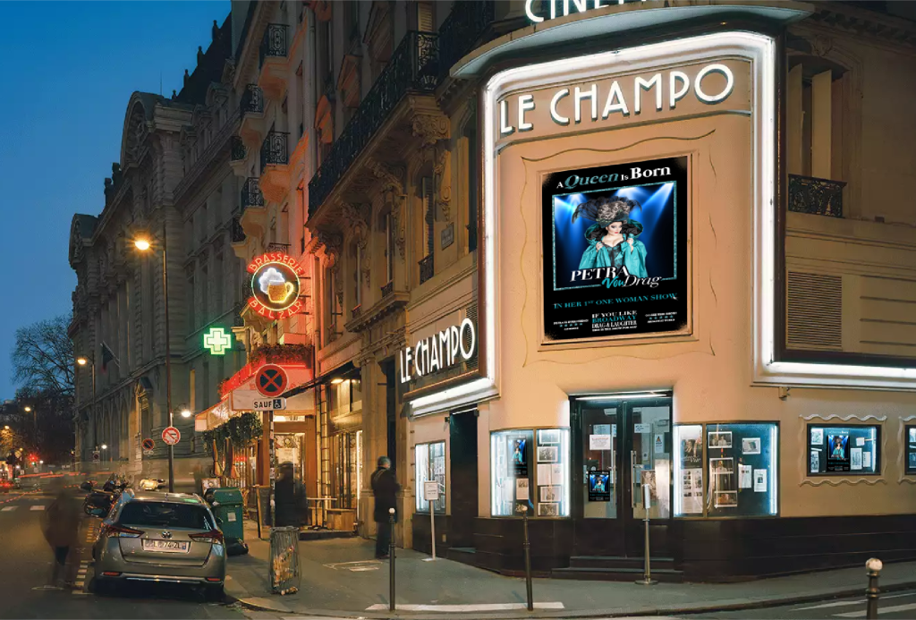 A well known singer/artist in France started a one woman drag show and wanted me to create a logo and poster for her shows touring Europe. She came to me with a photograph that she wanted photo edited to add more makeup and color for the poster.